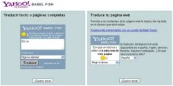 El traductor Babel Fish es un servicio que nos ofrece Yahoo, un simpático pescadito amarillo que te permite traducir tanto texto como sitios Web completos en múltiples idiomas (disponible en 12 idiomas). También puedes agregarlo a tu Blog, con lo cual podrás traducir tu sitio del español al inglés y francés.